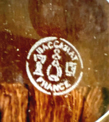 Vintage cut crystal small ice bucket with brushed silver finish handle by Baccarat. 5 inches tall, 5 inches diameter. Tongs are inches long. Excellent condition. Marked.